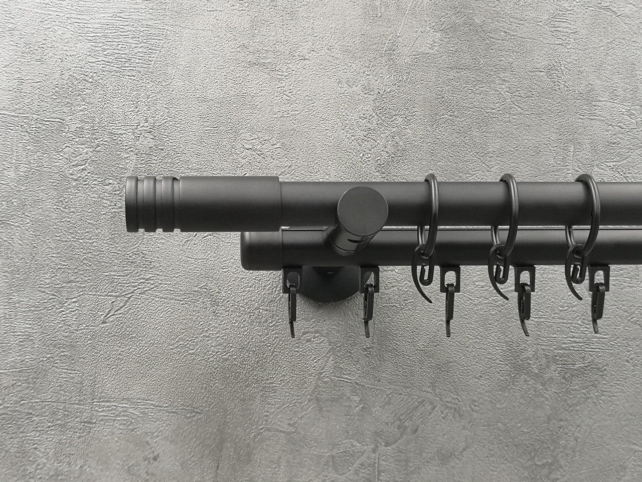 Карниз Quadrum Модуло 160 см подвійний чорний матовий універсальний 19/19 мм гладка/імпресійна (кільця з гачками)